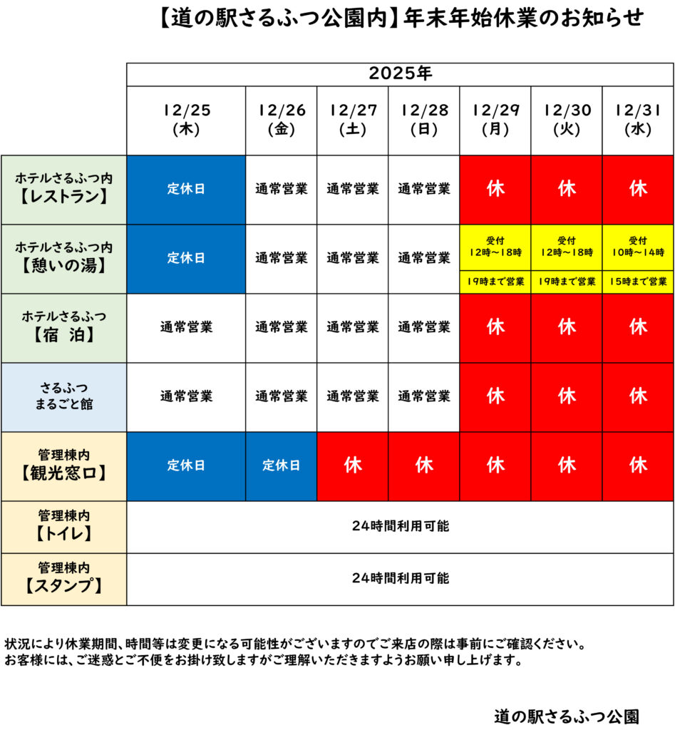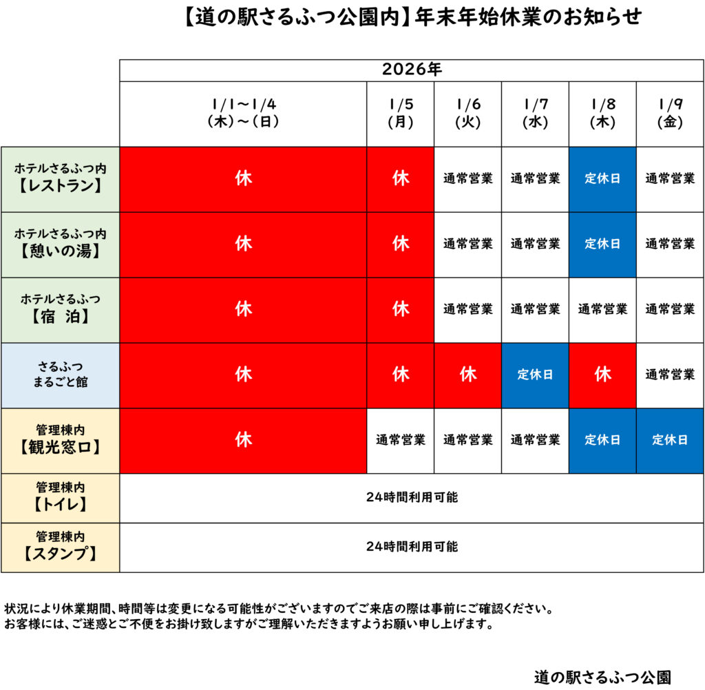 いつも道の駅さるふつ公園をご利用いただき誠にありがとうございます。